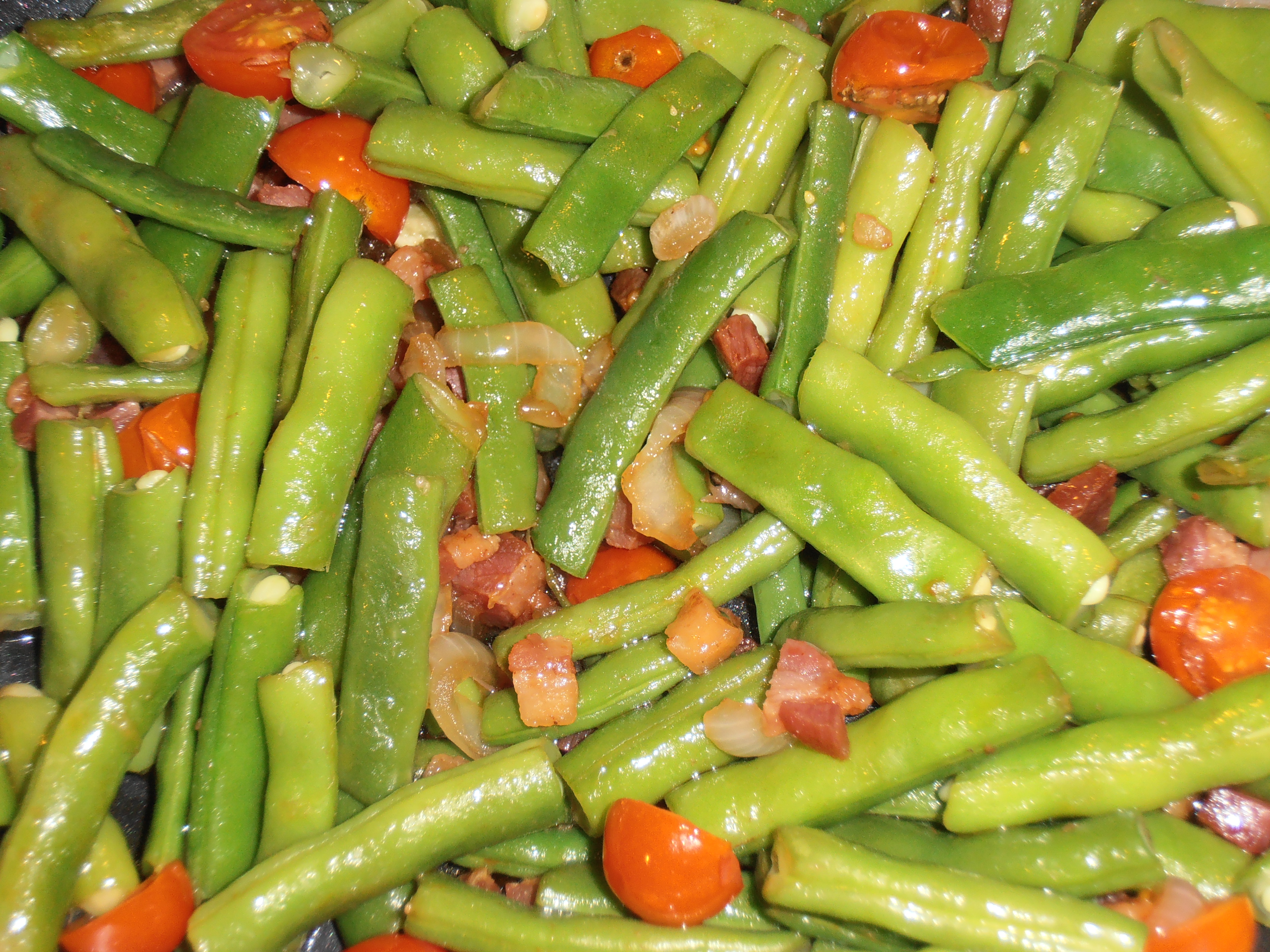 Tonight I cut the veggies, cooked them with small, diced pancetta squares and served them along side of thin, grilled pork chops and local Pennsylvania bicolor corn on the cob.