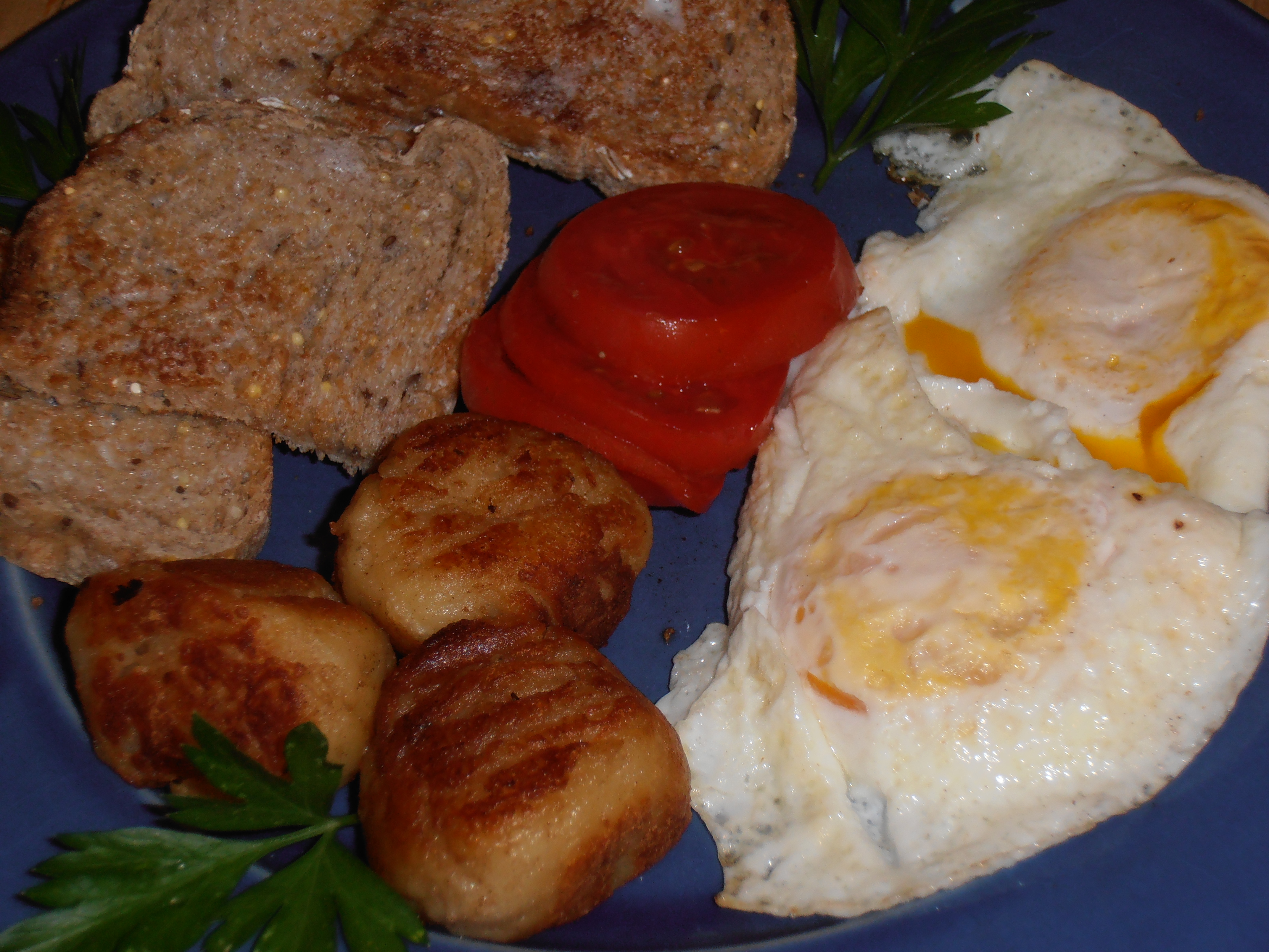 This morning, before my usual bike ride with my neighbor Bob, Sandy fried the dumplings and served them along side of my eggs and toast.